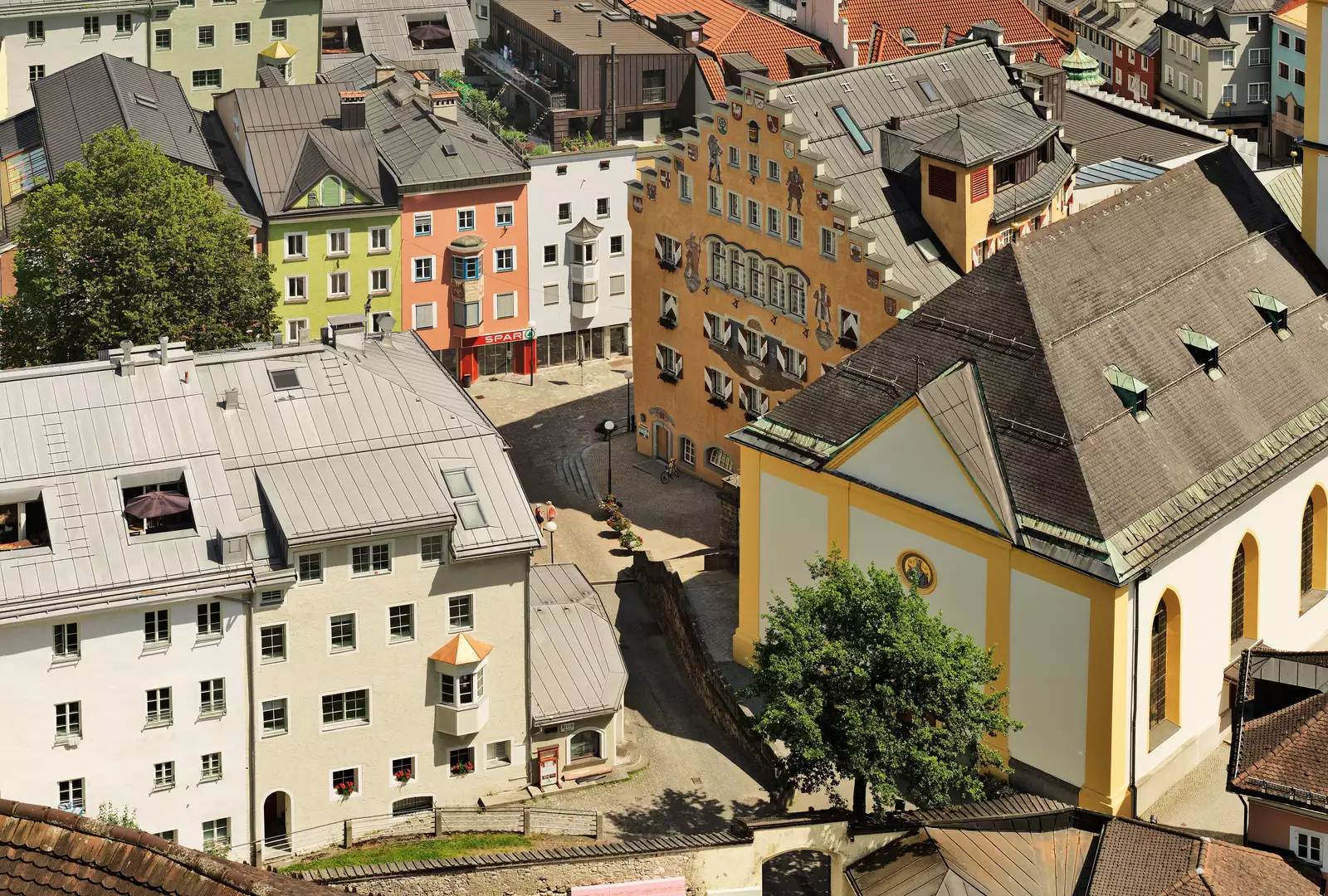 Ebenso der Besuch der am Pfarrplatz situierten Dreifaltigkeitskirche mit Krypta, reich bestückt mit Relief-Fresken an der Außenmauer, die an das Widum und das Mesnerhaus anschließt. Kirche und dazugehörige Gebäude sind denkmalgeschützt. Die römisch-katholische Stadtpfarrkirche gehört zum Dekanat Kufstein in der Erzdiözese Salzburg. Die Kirche umrundend gelangen Sie zum Pfarr- oder Paramentenstöckl, inklusive „Adlerblick“ auf den Oberen Stadtplatz.