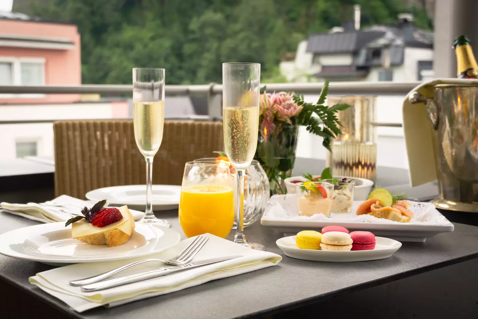 Nur zwei Suiten sind als SUITE EXCLUSIVE mit eigenem Terrassenbalkon buchbar. Auf 40 m² Wohnfläche lässt es sich angenehm wohnen – das Outdoor Cocooning auf dem rund 12 m² großen Terrassenbalkon macht den Aufenthalt unvergesslich. Eintreffen. Ausruhen. Anstoßen – im Freien, mit einem Glas Champagner. Mit Blick auf die historische Festung Kufstein, das Wahrzeichen unserer Stadt.